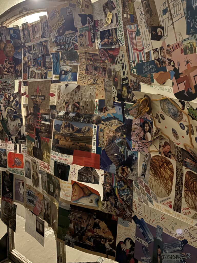 Lotte showed the artistic installations and the creative photos created through collaborative workshops. Then, Mariana guided the audience through the collage installation, co-created with community members during the events. Zaida introduced her workshop, through which she created a creative and safe space for migrants to share their stories and their relationship with Germany. Hannah invited visitors into her idea of mindful rituals and tea ceremonies as medium to connect people and to share cultures. Each room offered a glimpse into how art can connect people and give shape to shared experiences.