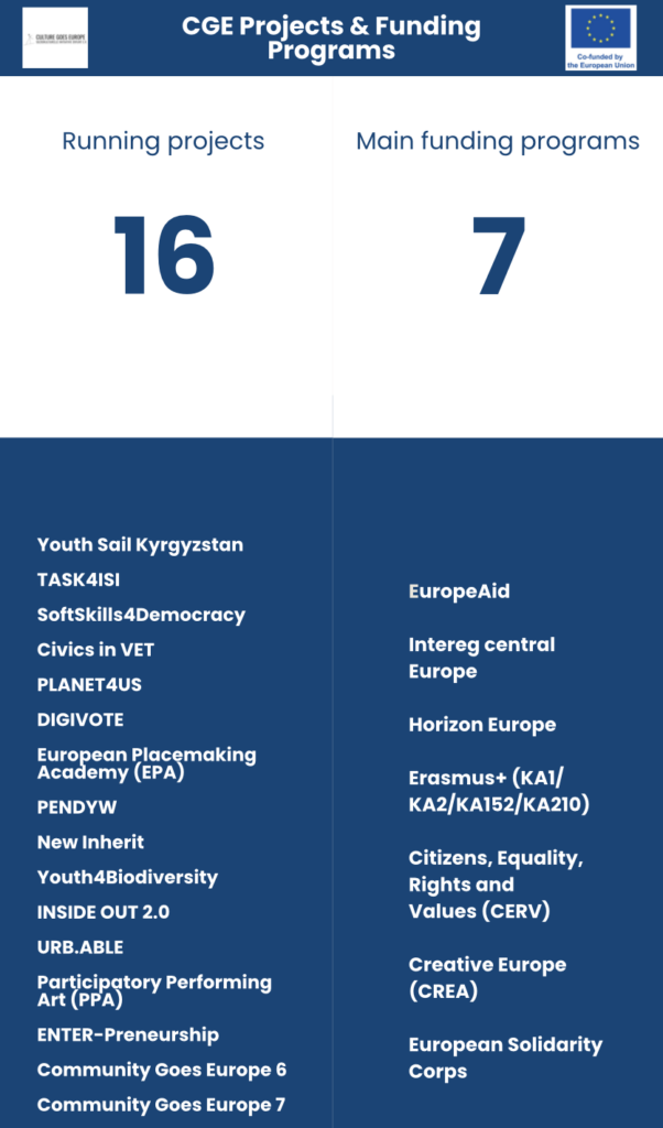 Together, these projects reflect the diversity of CGE’s work and its commitment to youth participation,human rights education, democracy, sustainability and social innovation at both local and international levels.